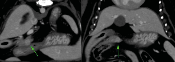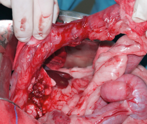 Las pancreatitis crónicas asociadas a adherencias entre la vena esplénica y el tejido pancreático se han resuelto mediante pancreatectomía total y esplenectomía. Sin embargo, en medicina humana existe una técnica de preservación del bazo descrita por Warshaw con transección de los vasos esplénicos, basada en que el bazo se nutre por los vasos cortos gástricos y la gastroepiploica izquierda42 (no aplicable para tumores cercanos al hilio esplénico).