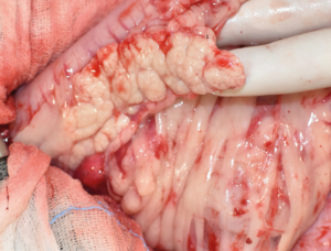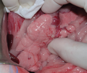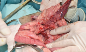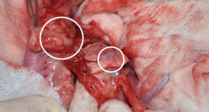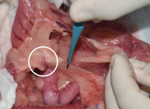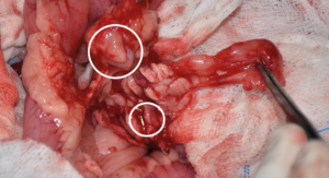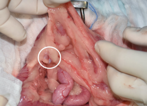 Cualquier manipulación del tejido pancreático va a producir, en mayor o menor medida, una pancreatitis aguda (infiltración de células inflamatorias, necrosis acinar y de la grasa peripancreática, microabscesos, trombosis, hemorragias, etc) y/o pancreatitis crónica (fibrosis asociada a los 7 días tras la cirugía), que se va a ver reflejada en criterios enzimáticos (p.ej. aumento TPLI) y clínicos (dolor abdominal, vómitos, etc.). Por tanto, el objetivo de la cirugía será conseguir que dicha condición sea subclínica.31