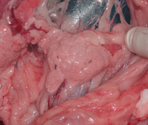 Las neoplasias (carcinomas) del páncreas exocrino son infrecuentes en animales domésticos (<0,5 % de los tumores notificados).34 La mayoría son metastásicos en el momento del diagnóstico (tasa metastásica reportada del 32-50 % en gatos), lo que reduce la tasa de supervivencia. En un estudio, los tiempos de supervivencia descritos en felinos fueron más largos si los gatos se sometían a cirugía (165 días, frente a 30 días en el caso de los gatos que no se sometieron a cirugía) y quimioterapia (165 días, frente a 7 días en los gatos que no recibieron quimioterapia).35 En otro estudio, Nicoletti et al. reportaron una mediana de tiempo de supervivencia de 316 días para 4 de los 9 gatos incluidos sin enfermedad metastásica en el momento del diagnóstico.36