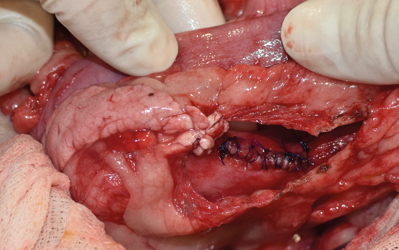 Una vez finalizada la pancreatectomía se debe cerrar el defecto creado en el mesoduodeno para evitar la herniación de otros órganos. Resulta factible reseccionar hasta un 75-90 % de tejido sin alterar las funciones endocrina ni exocrina, siempre y cuando se preserve la vascularización del tejido restante y el drenaje pancreático al intestino de ese tejido pancreático residual.12 Se ha descrito cierta capacidad regenerativa del páncreas.13 Mayor resección implica mayor morbilidad.