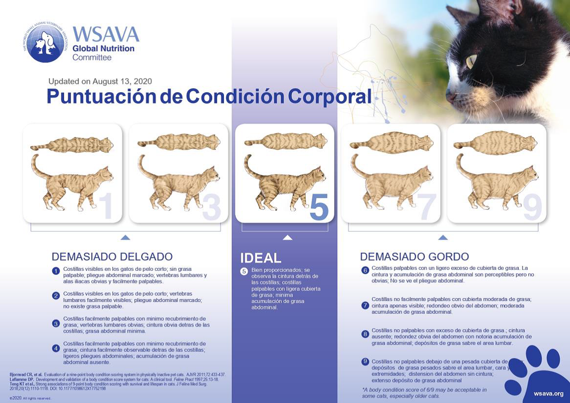 Muchos tutores no son conscientes de que su gato tiene sobrepeso25,26; la subestimación de la condición corporal es un factor de riesgo para la obesidad, por lo cual es necesario educar a los tutores acerca de la evaluación de la condición corporal de sus gatos3.
