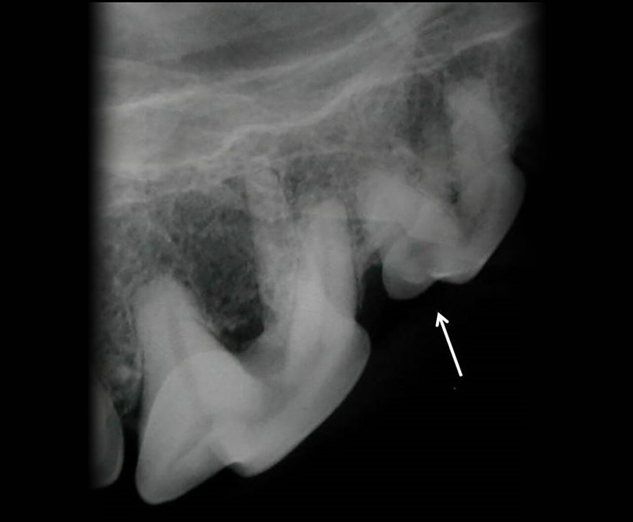 De hecho, estudios realizados por Verstraete y cols. (1998), tanto en el perro como en el gato, determinan que en las evaluaciones radiológicas dentales se diagnostican lesiones clínicamente importantes (27 % en perros y 41 % en gatos) cuando no hay hallazgos clínicos presentes en el examen intraoral. Por su parte, en un estudio realizado en 147 gatos con periodontitis, Lomer (2001) halló que un 25,2 % tenían evidencia de pérdida periodontal más grave de lo esperado en la exploración física. Además, Moore (2014) en sus estudios en 42 gatos que habían sido sometidos a la extracción de los 4º premolares maxilares (108 y 208) y de los 1º molares mandibulares (309 y 409) encontraron que el 92,8 % de los casos presentaban fragmentos de puntas de raíz retenidas.