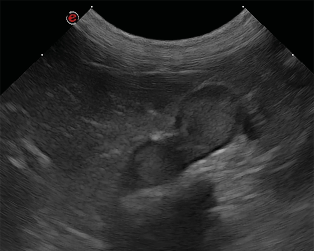 A nivel ecográfico, en perros que padecen hiperadrenocorticismo (síndrome de Cushing) generalmente se observa un aumento de tamaño de las glándulas adrenales. Este incremento es simétrico en caso de hiperadrenocorticismo de origen hipofisiario, mientras que los perros con hiperadrenocorticismo adrenal presentan una masa adrenal unilateral (imagen 2) y la glándula contralateral se identifica disminuida de tamaño o normal18.