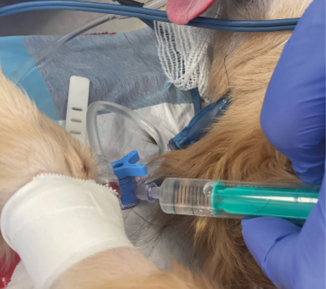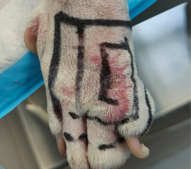 Imagen 15. Tratamiento intraoperatorio sobre el lecho quirúrgico de un mastocitoma subcutáneo mediante la técnica concéntrica.