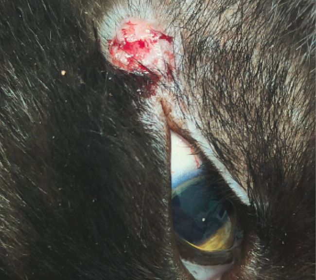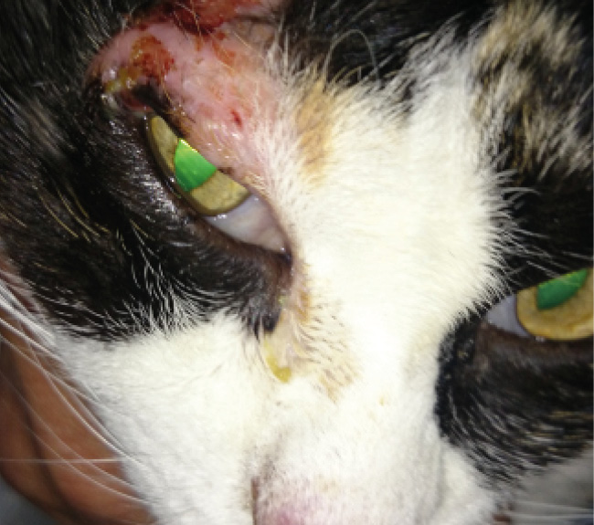 El carcinoma de células escamosas (CCE) es la neoplasia más frecuente en estas localizaciones, especialmente en los gatos, sobre todo en aquellos de pelaje blanco o claro, debido a la exposición crónica a la luz ultravioleta, considerada uno de los principales agentes ambientales implicados en su desarrollo. Estos tumores suelen localizarse en áreas con escasa cobertura pilosa, como los pabellones auriculares, los párpados, el plano nasal y las regiones temporales.