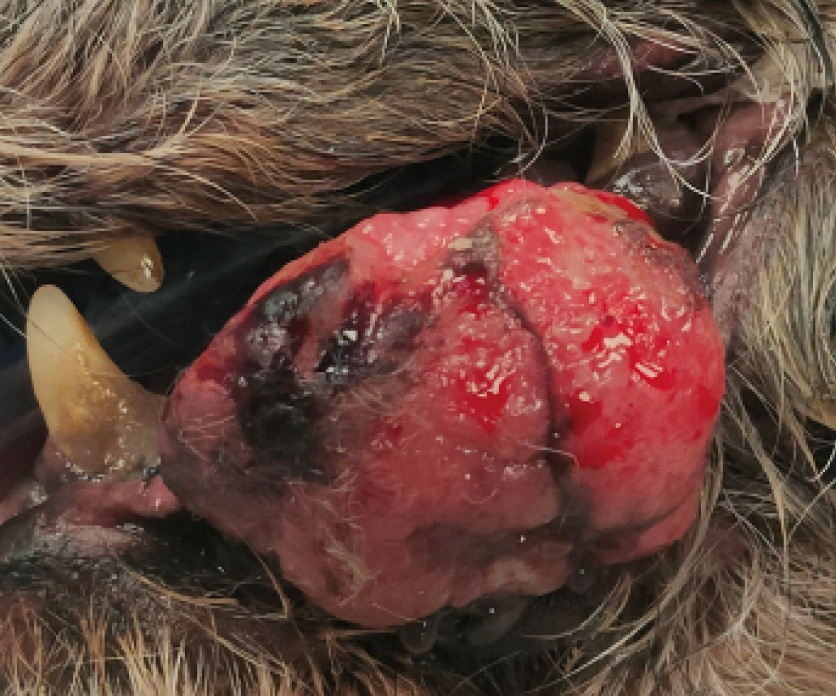 Imagen 27. CCE maxilar tratado con electroquimioterapia en un erizo africano.