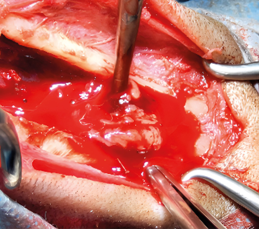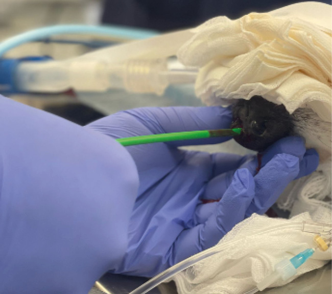 Para la aplicación de la electroquimioterapia en tumores nasales, es necesario el uso de electrodos diseñados específicamente para la cavidad nasal. Se recomienda el tratamiento de ambas cavidades nasales, incluso cuando la afectación se limita a un solo lado, con el fin de maximizar el control local. En tumores localizados en regiones más caudales de la cavidad nasal, la electroquimioterapia puede combinarse con cirugía mediante la realización de una rinotomía dorsal, lo que permite la aplicación directa del tratamiento sobre el lecho tumoral (imágenes 24 y 25).