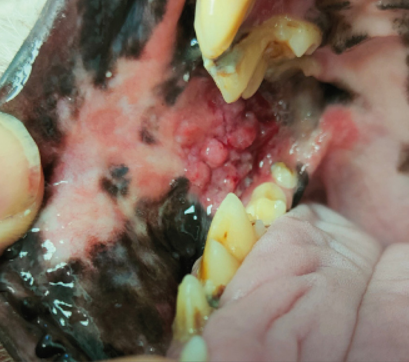 La electroquimioterapia puede emplearse como tratamiento primario en neoplasias orales de pequeño tamaño que no presentan evidencia de invasión ósea. No obstante, el tratamiento de lesiones localizadas en regiones más caudales de la cavidad oral suele ser técnicamente más complejo, y en aquellos casos en los que el tumor se encuentra cerca de piezas dentales, puede ser necesaria la extracción de estas para permitir una adecuada aplicación del tratamiento. Debe tenerse particular precaución en el manejo de tumores localizados en la lengua o en la región sublingual, debido al elevado riesgo de necrosis tisular y al posible fracaso terapéutico, aspectos que deben ser claramente comunicados a los tutores de los pacientes.