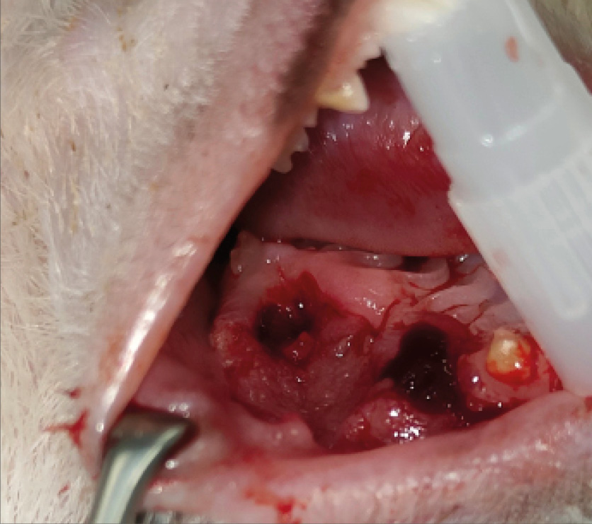 Además, la electroquimioterapia puede ser utilizada con fines paliativos, especialmente en el control del sangrado asociado a tumores orales avanzados. Asimismo, su aplicación en combinación con cirugía se ha explorado como estrategia terapéutica en tumores de gran tamaño, con comportamiento infiltrativo y compromiso óseo, en los que contribuye al control local de la enfermedad.
