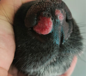 Imagen 8. CCE en el plano nasal de un labrador retriever. En esta localización y especie, la electroquimioterapia no se recomienda como tratamiento de primera elección debido a su limitada eficacia.