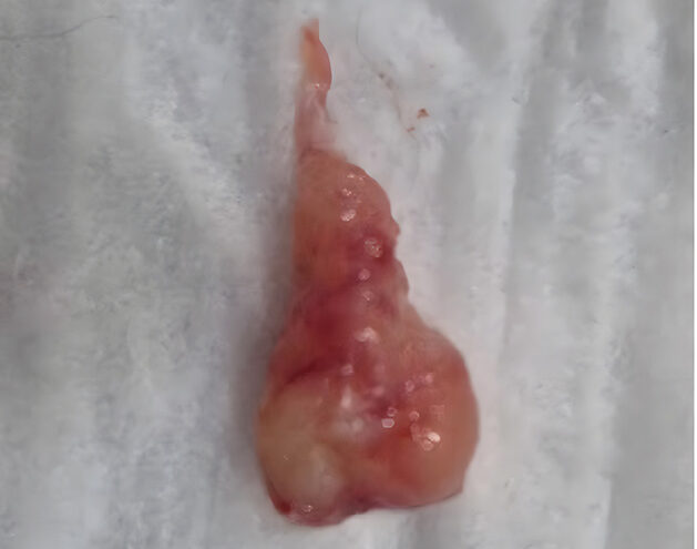 Los pólipos inflamatorios se originan en la mucosa del oído medio y, dependiendo de su patrón de crecimiento, pueden crecer hacia la nasofaringe (a través de la trompa de Eustaquio) o hacia el conducto auditivo externo (a través de la membrana timpánica) (imagen 3). La presencia de un pólipo se suele asociar con otitis media bacteriana secundaria.