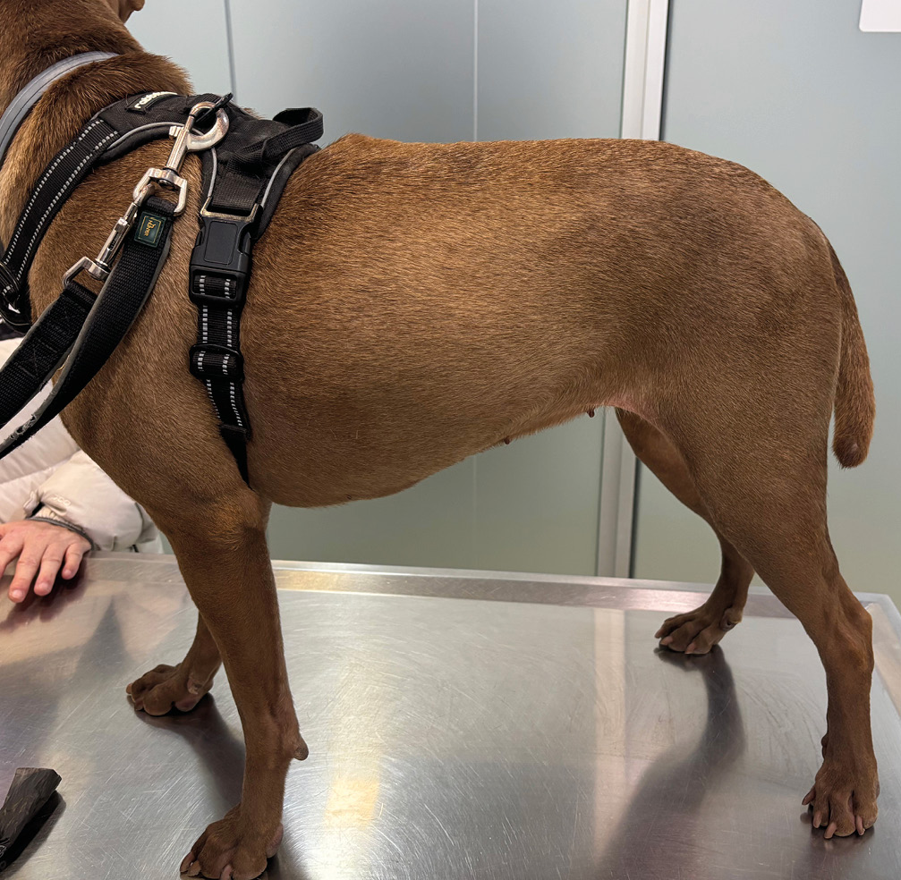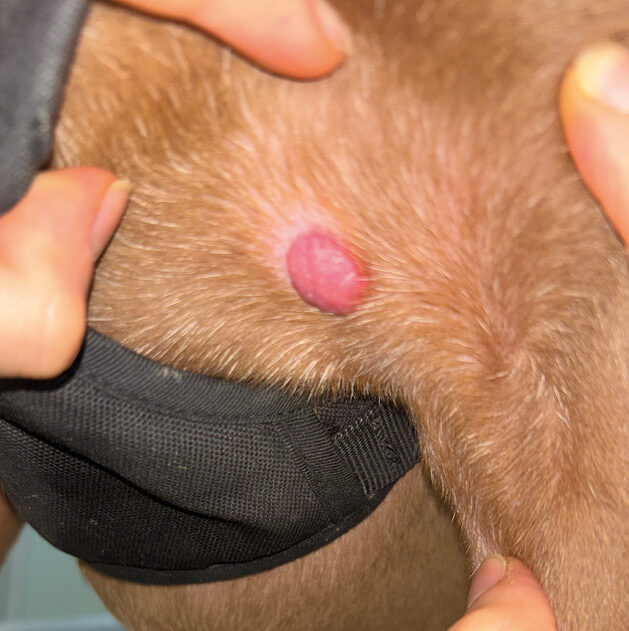 La tutora refirió la aparición, un mes antes de la consulta, de un nódulo cutáneo localizado entre el pecho y la axila izquierda.