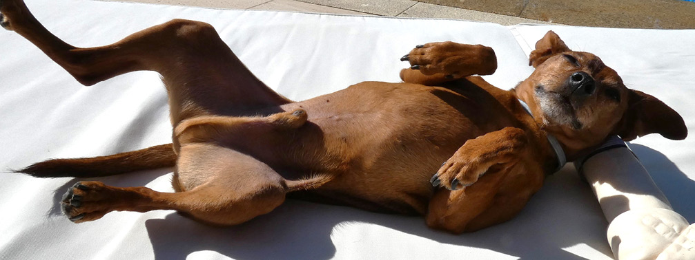 Consciente de la alta sensibilidad de las mascotas al contacto con estradiol, intenté minimizar o disminuir el contacto de mis antebrazos con mi perro. A pesar de esto, al cabo de unos 6 meses comenzaron a aparecer alopecia y máculas pigmentadas en abdomen ventral y costados, junto con ginecomastia y prepucio agrandado.